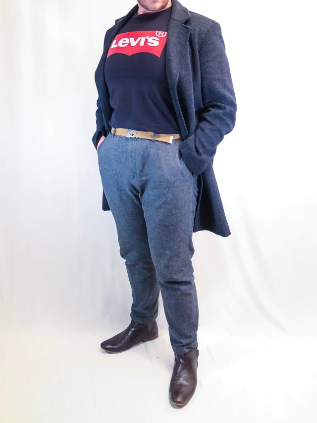 This durability is the reason that it is popular to manufacture garments in wool-poly or cotton-poly blends. While polyester is a cheaper material, adding a small amount of poly to a natural fibre is a good way of strengthening a garment at the textile end of the equation. The warmth provided by the density is why wool-poly blends are popular in garments such as overcoats, like my overcoat in the images below: