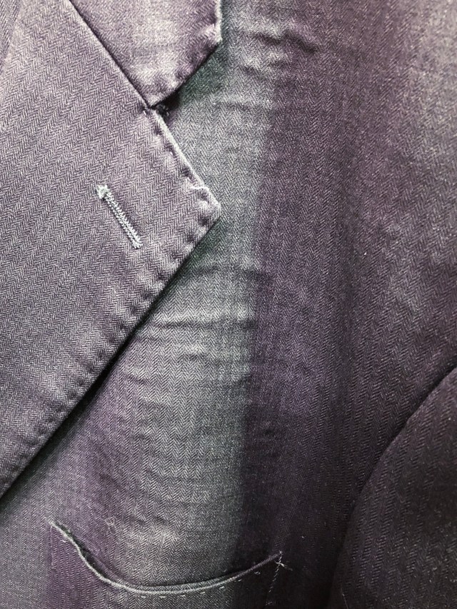 In Choosing a Suit Jacket Pt. 2, I mentioned how jackets can be fused or canvassed. When talking about fused construction I briefly mentioned how in this method the inner and the outer are simply fused together using glue, and how the glue fails with age to create an unappealing bubbling effect. Today I will show what that looks like.
