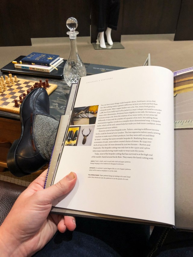 Deciding on the details can be a lengthy process unless you know exactly what you want. Make sure to delegate a good hour or two in your schedule when you go in to make an order. Maybe a little extra if you decide you want to stick around and read one of the interesting books they have out, like I did for Simon Crompton‘s ‘The Finest Menswear in the World’.