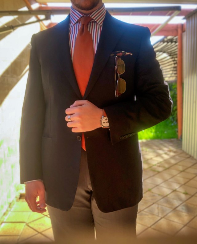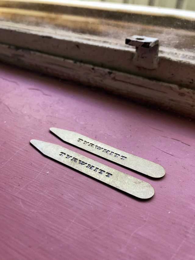 Metal ones are my personal preference, as they give the collar a bit of weight. The added sturdiness of the metal also makes for a better, straighter shape. The weight isn’t noticeable to the wearer, but the positive effect certainly is. In the above gallery, I’m wearing metal collar stays in the outfit with the orange tie.