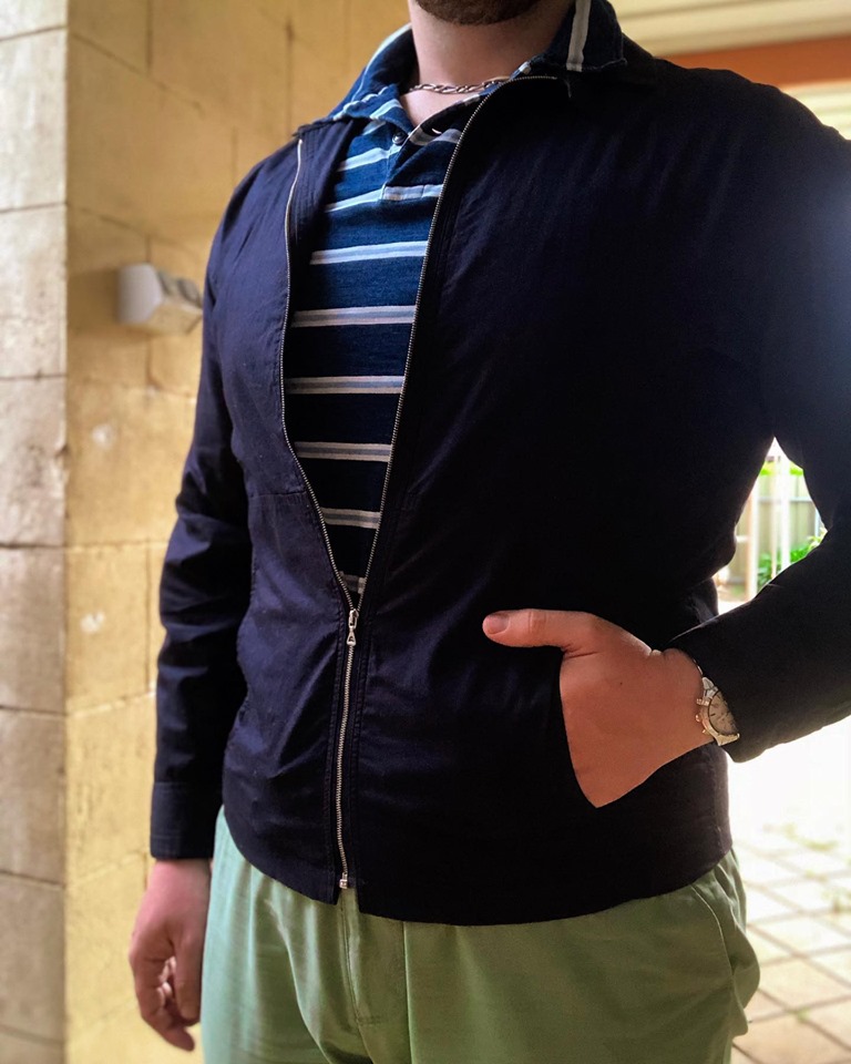 Mine is navy blue. I’d like to acquire another one in khaki or red, which I think are the most versatile two colours you can get with these jackets. Darker shades of green are also an excellent alternative.