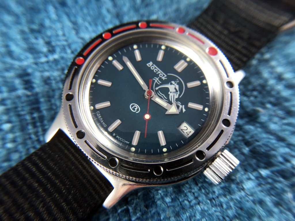 Vostok’s Komandirskie (Tank) is the cheaper baby brother of the popular Amphibia diver. It comes in a variety of designs and doesn’t have as much of a water resist rating as the Amphibia, with some being only splash resistant while others are up to 100m.