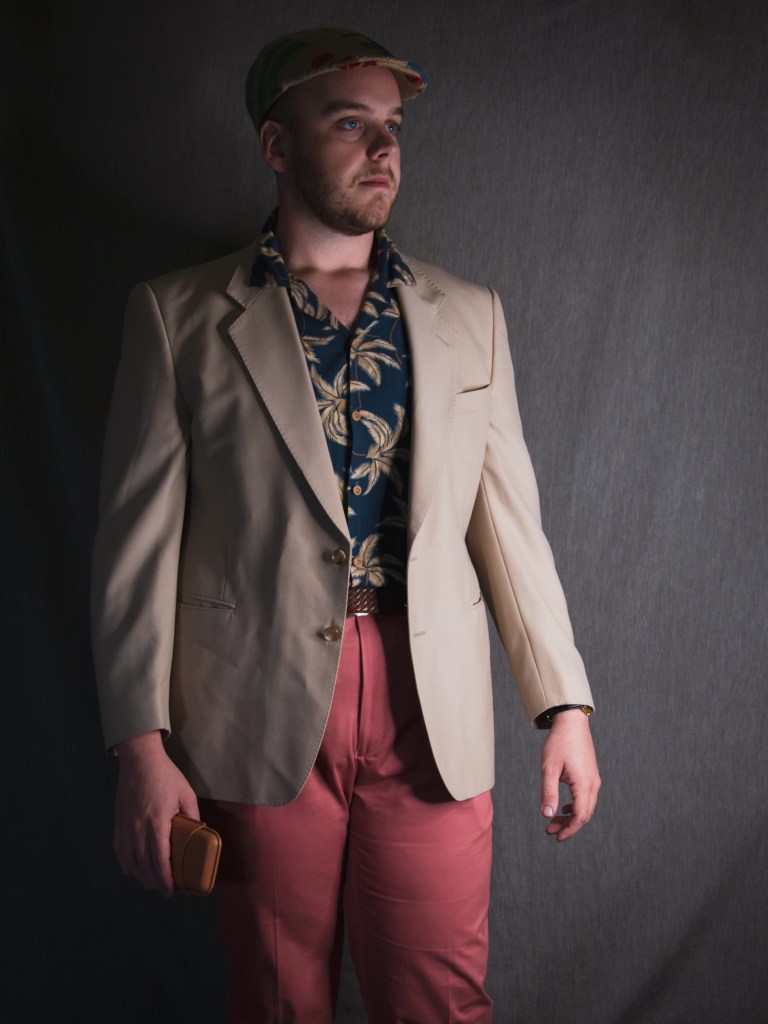 My instant go-to garment for this theme is my palm print camp collar rayon shirt. This one’s got some cool history, as it’s a vintage 1980s piece and the brand – Paradise Found – is the one who supplied the array of colourful shirts worn by Tom Selleck during the iconic TV series Magnum, p.i.
