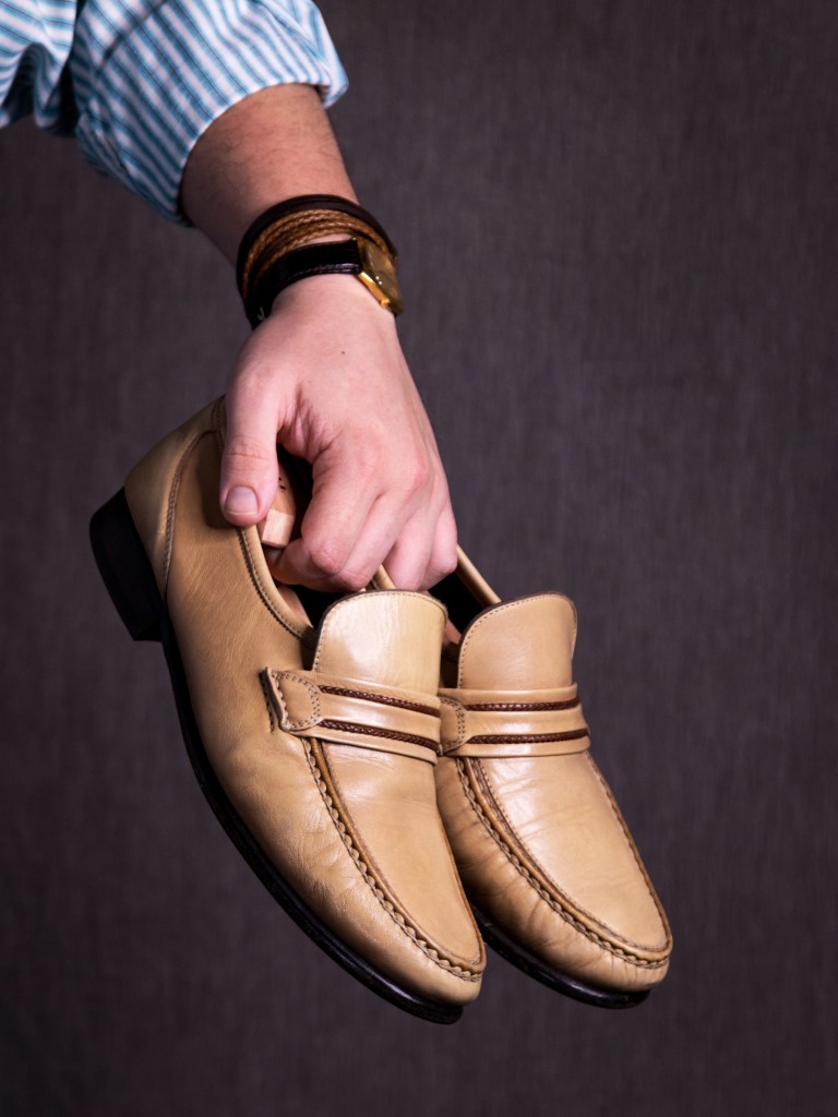 Note: this doesn’t mean you can’t have a low vamp loafer. The position of the vamp won’t disqualify you (to see the difference between high and low vamp penny loafer styles, compare the middle picture below to that on the right) but a low and tight seam height will.