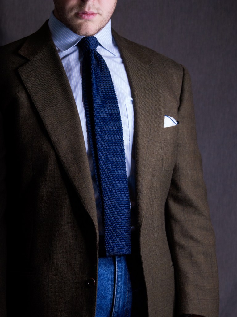Shown below is an outfit that I put together using an OCBD, tweed jacket, jeans and a wool tie with plenty of texture. It’s really pleasing to the eye, and I think you’ll agree.