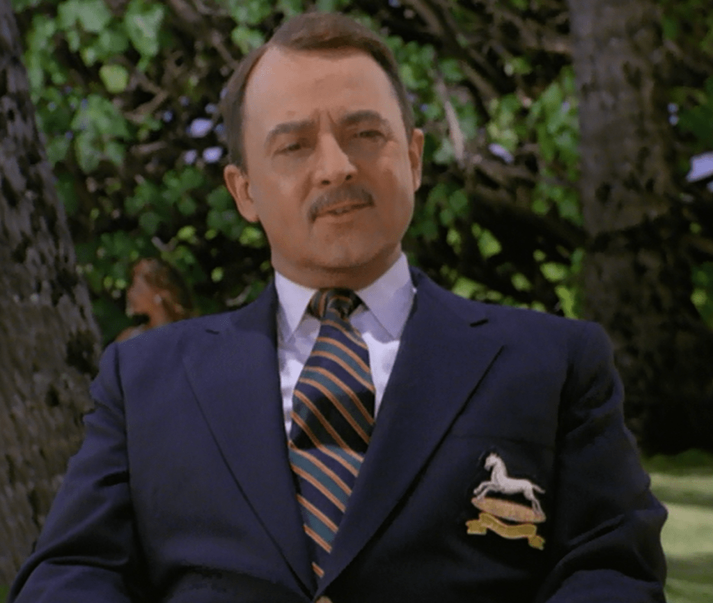 Jonathan Quayle Higgins III is the manager of the estate that Magnum lives at, and is the second most featured character in the show. His history is that of a traditional Briton who adheres closely to the old class and family system, and of a distinguished military man who carries himself in a conservative old-fashioned British manner. Often, he’s seen in old – though pristinely maintained – British military fatigues worn in uniform style which serves as his workwear. However, when he’s dressed to leave the estate or receive guests, he’s quite the dapper Englishman and is seen in a variety of tailored clothing. Many of his outfits are something that could still easily be worn today. His staple style is a navy blazer with a regimental stripe or repp stripe tie. It’s very much the image of English public schoolboy.