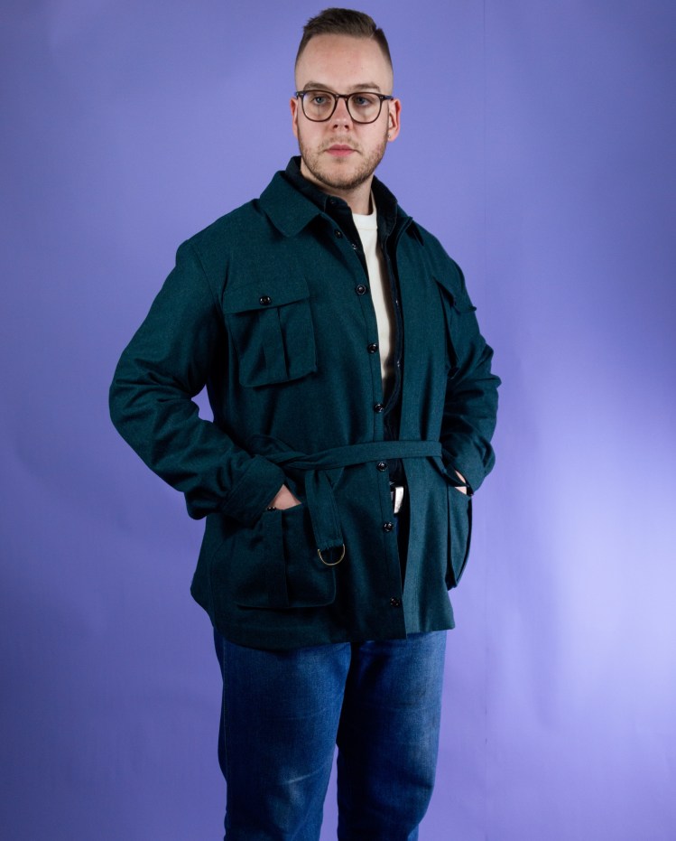 It’ll work well on a man with just about anything classically masculine.